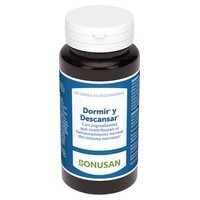 Dormir y Descanasar de Bonusan ayuda al descanso nocturno gracias a la valeriana, uno de los ingredientes de esta completa y exclusiva composición. La valeriana (Valeriana officinalis) ayuda a conciliar el sueño más rápido, y la bufera (Withania somnifera) es relajante. Este producto contiene también grifonia, la hierba del gorro de dormir (Griffonia simplicifolia) y flor de la pasión ( Passiflora incarnata).